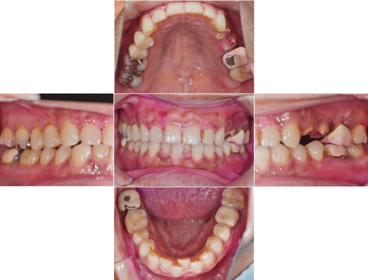 | 虫歯で歯が少ない状態です。 歯と歯茎の境目が不明瞭です。 |